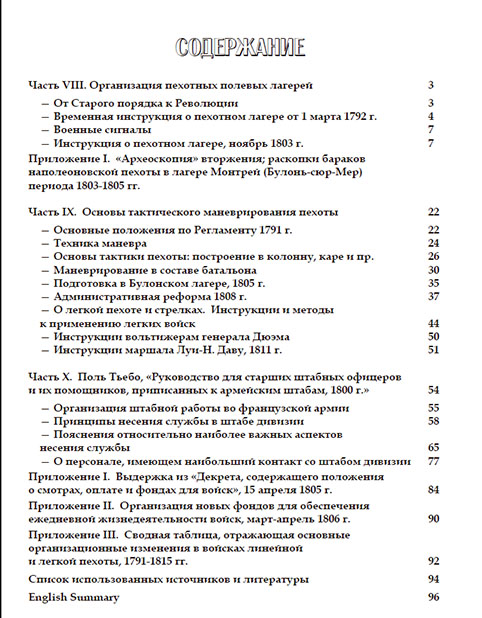 Несмотря на то, что имеется множество работ самого разного направления, посвященных армии Наполеона, данная работа является исправленной, во многом дополненной и объединённой версией раннее выходивших аналогичных исследований: «Вопросы тактики французской пехоты, 1792-1815 гг.» (Тематическое приложение № 2 к журналу «Воин», 2005 г.); «Трансформация униформы и снаряжения французского пехотинца, 1791-1812 гг.» (вышедшее в Мастерской «Vanderhoff & 15-e légère», М., 2012 г.), «Пехота армии Наполеона: от Аустерлица до Ватерлоо. Том 1-й» (там же, М., 2015 г.), а также многочисленных статей, опубликованных в разное время на платформе, любезно предоставленной социальной сетью ВКонтакте.